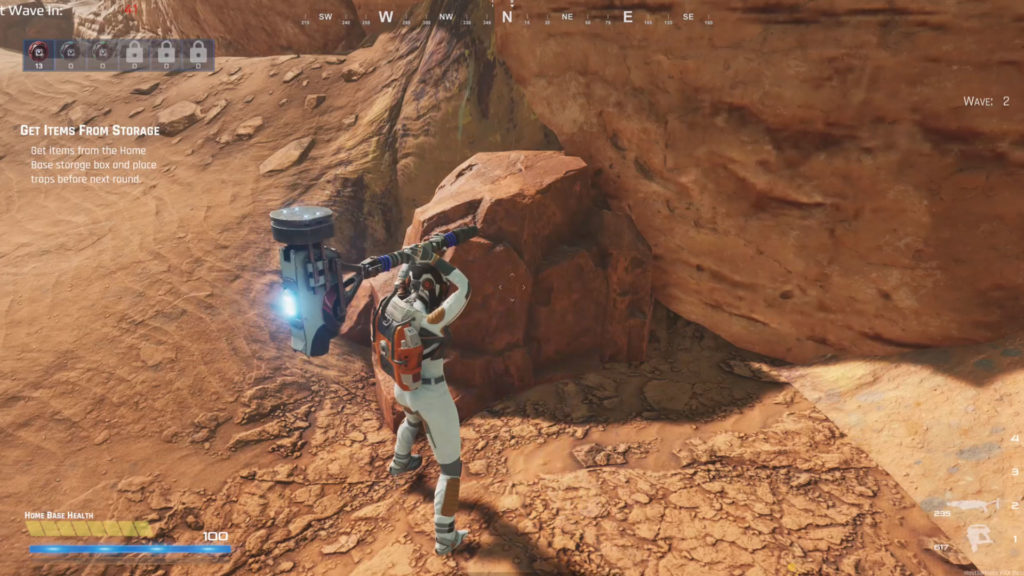 You won’t last long without automating defensive logistics. Print delivery bots to transport various items around home base like from ammo stations to turrets or from resource nodes to blast furnaces.